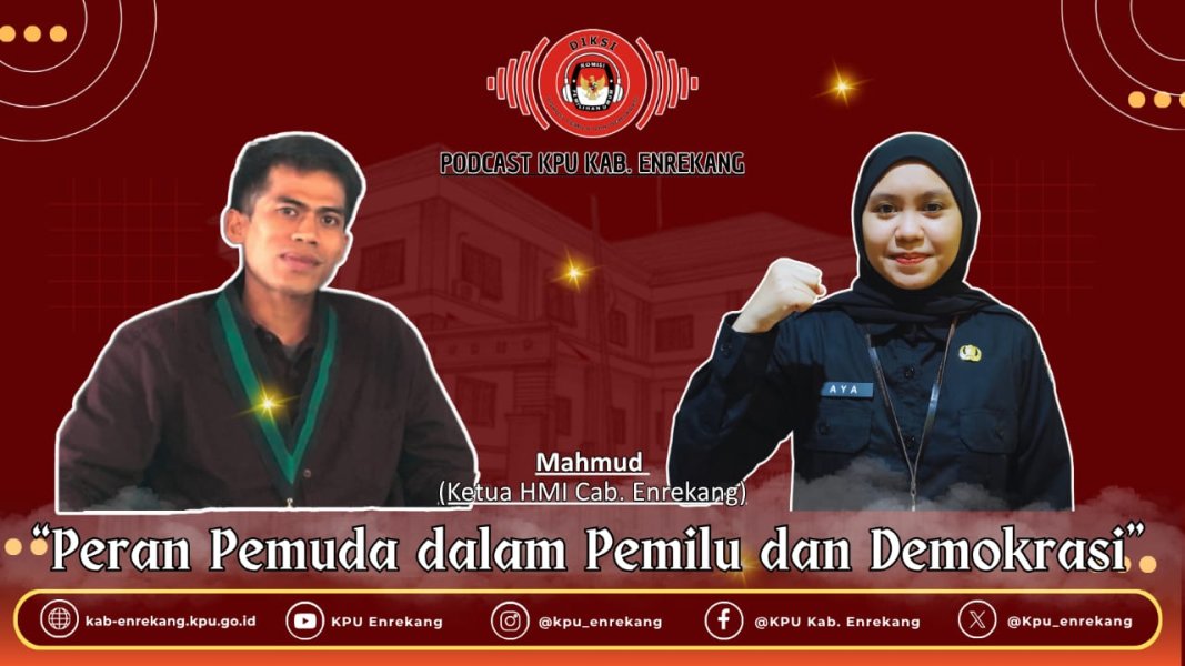 kab-enrekang.kpu.go.id -- Komisi Pemilihan Umum (KPU) Kabupaten Enrekang kembali melanjutkan program edukatifnya melalui Podcast Diksi (Diskusi Pemilu dan Demokrasi), kali ini dengan tema “Peran Pemuda dalam Pemilu dan Demokrasi.”