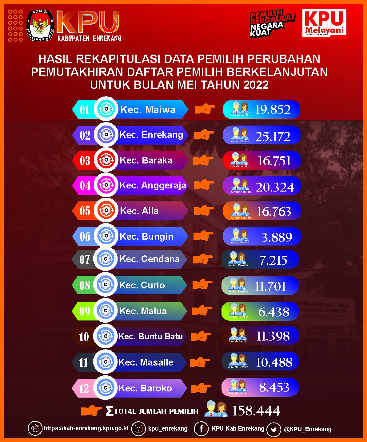 Rekapitulasi Hasil Pemutakhiran Daftar Pemilih Berkelanjutan Periode Mei 2022 Jumat, 03 Juni 2022 00:00 737 Pengumuman Rekapitulasi Hasil Pemutakhiran Daftar Pemilih Berkelanjutan Periode Mei 2022, Berita Acara Dapat di Unduh disini Baca Selengkapnya